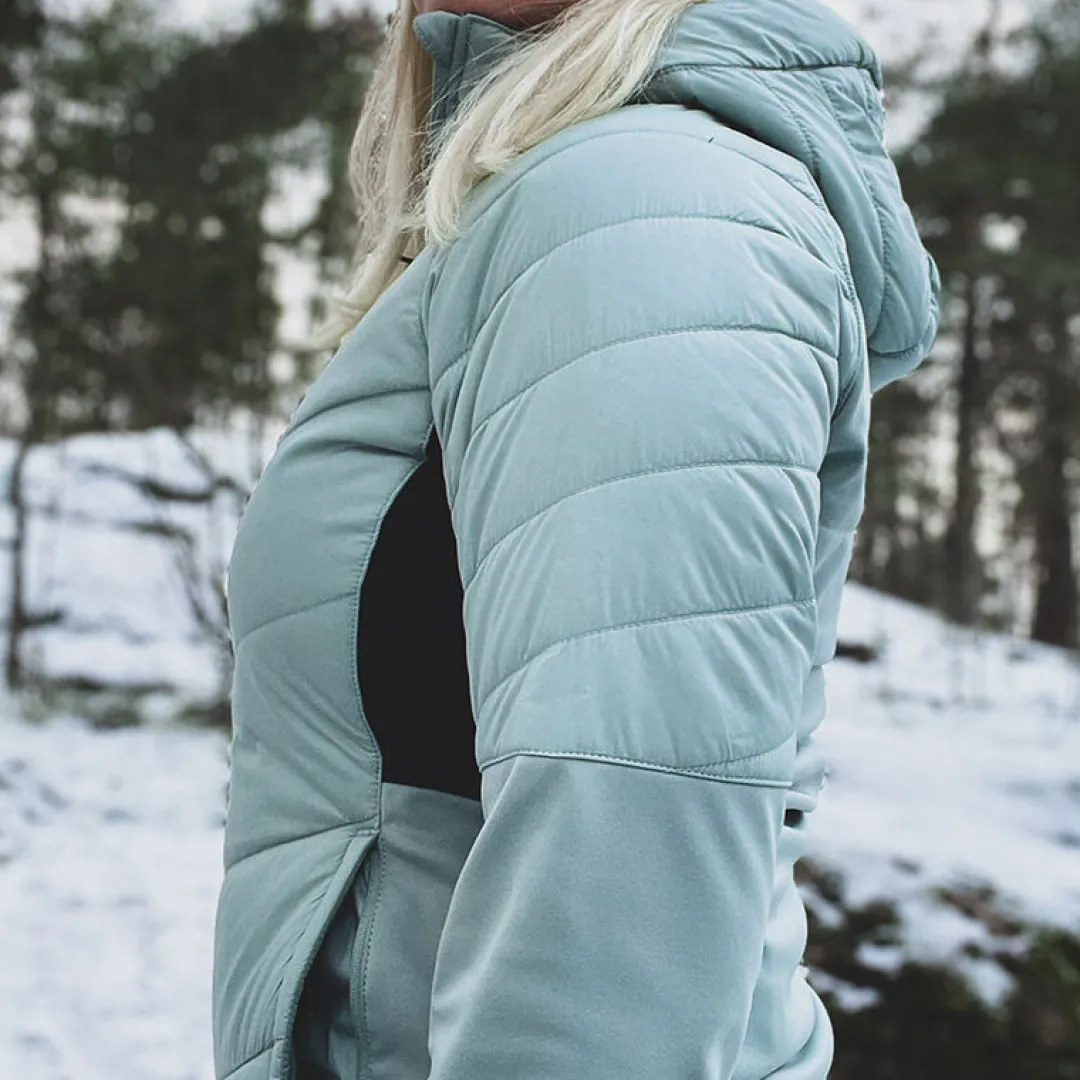 Hanki naisten hiihtotakki on täydellinen valinta lämmittelyyn ja matalasykkeisiin treeneihin kylmällä ilmalla. Se soveltuu erinomaisesti sekä maastohiihtoon että talvijuoksuun, mutta myös muuhun aktiiviseen ulkona liikkumiseen ja treenaamiseen.