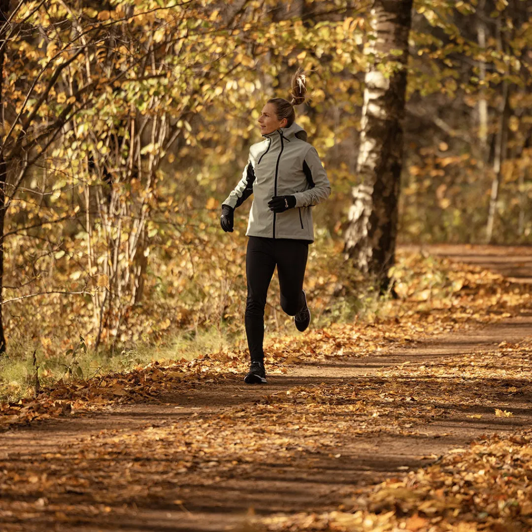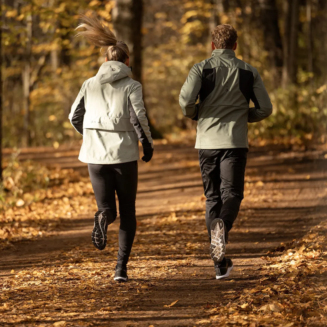 Tämä takki pitää tuulta ja lämmön sisäpuolella, sillä siinä on vahva Stormwall®-neulosmateriaali fleecevuorella. Selässä on ventilaatio, joka lisää hengittävyyttä ja pitää olon mukavana pitkällä lenkillä. Korkea kaulus ja huppu antavat lisää suojaa.
