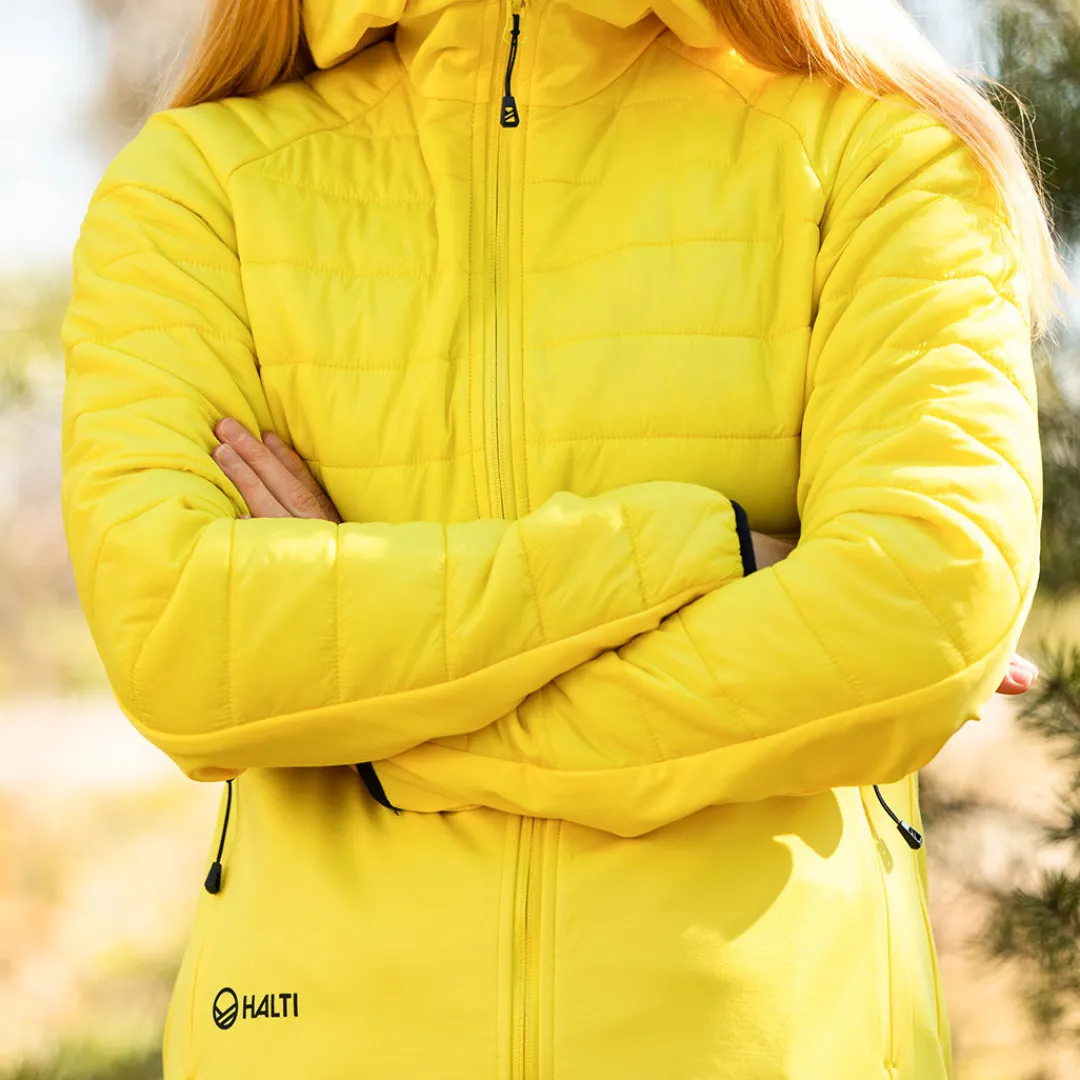 Naisten monikäyttöinen välitakki, jossa on tekninen ja joustava materiaali yhdistettynä vanutäytteisiin paneeleihin. Veidnes insulation takkia voi käyttää sellaisenaan tai takin alla lämmittävänä välikerroksena olosuhteista riippuen.