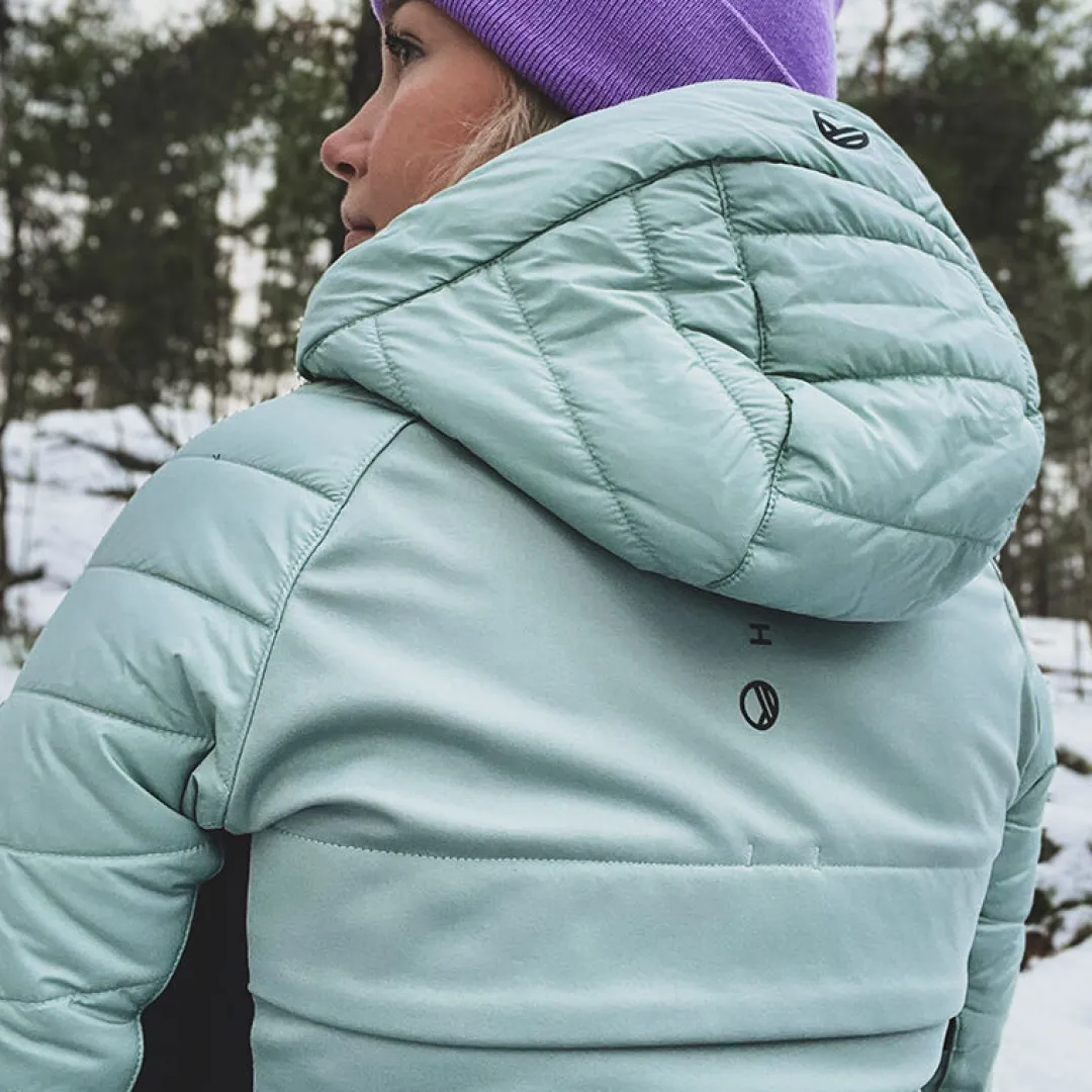 Hanki naisten hiihtotakki on täydellinen valinta lämmittelyyn ja matalasykkeisiin treeneihin kylmällä ilmalla. Se soveltuu erinomaisesti sekä maastohiihtoon että talvijuoksuun, mutta myös muuhun aktiiviseen ulkona liikkumiseen ja treenaamiseen.