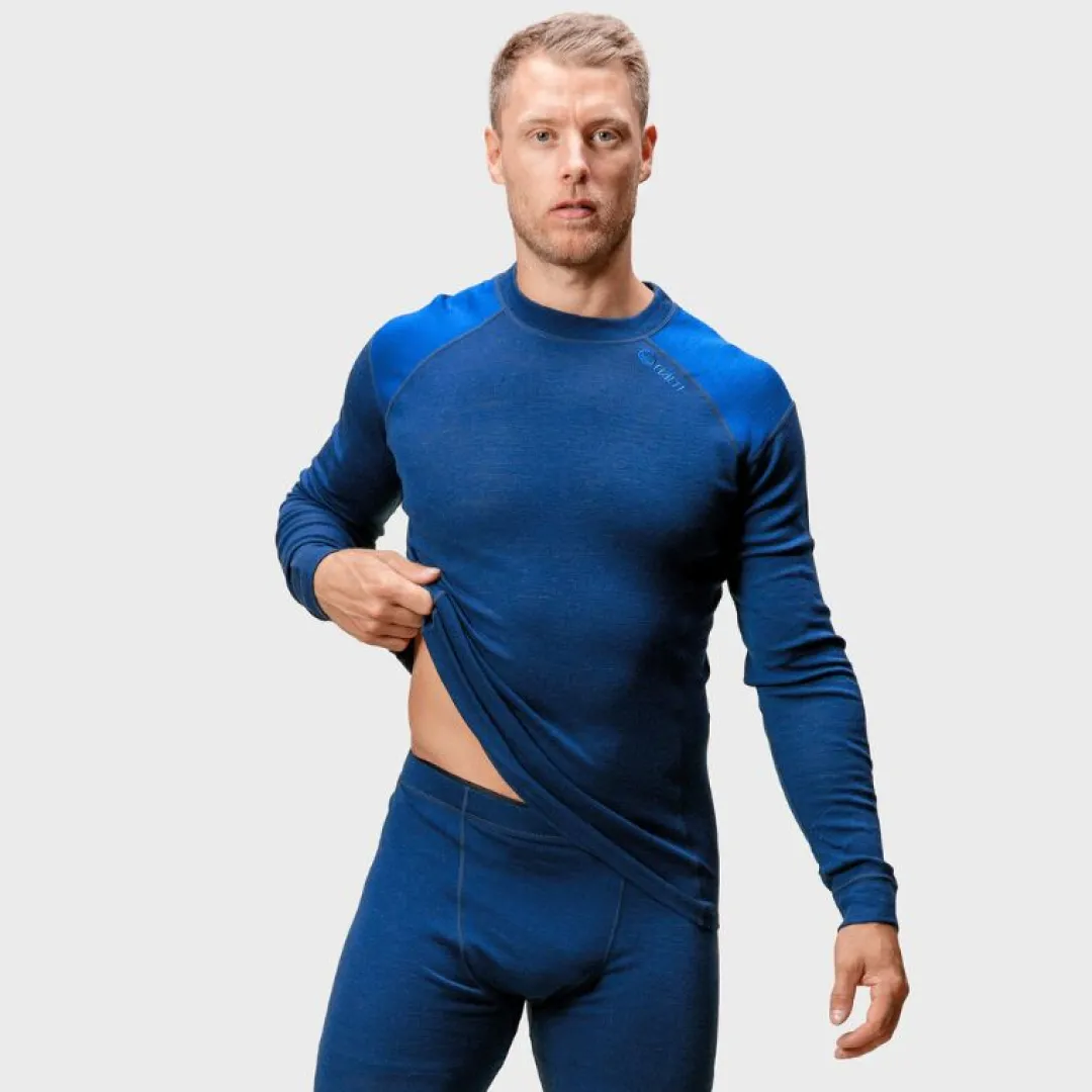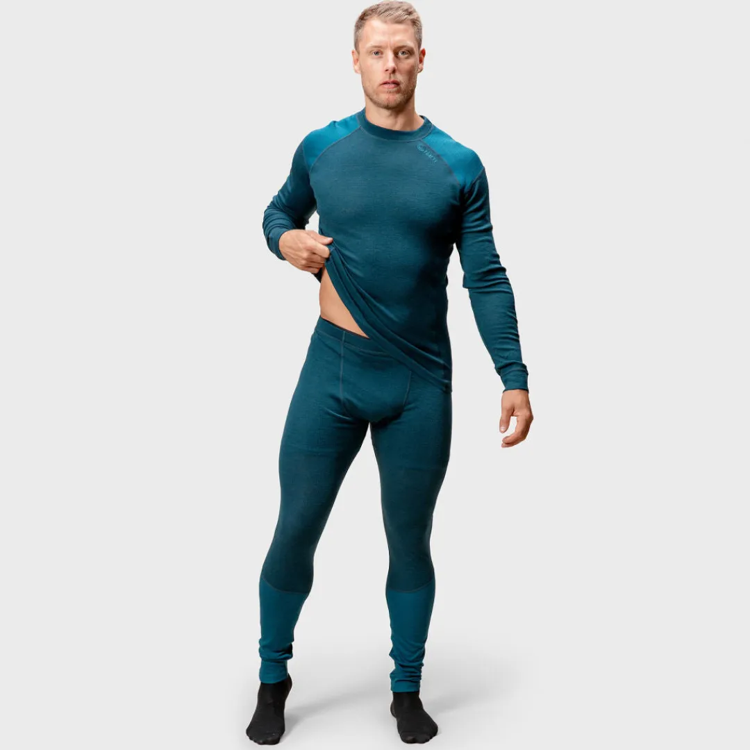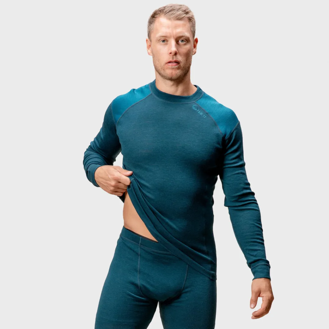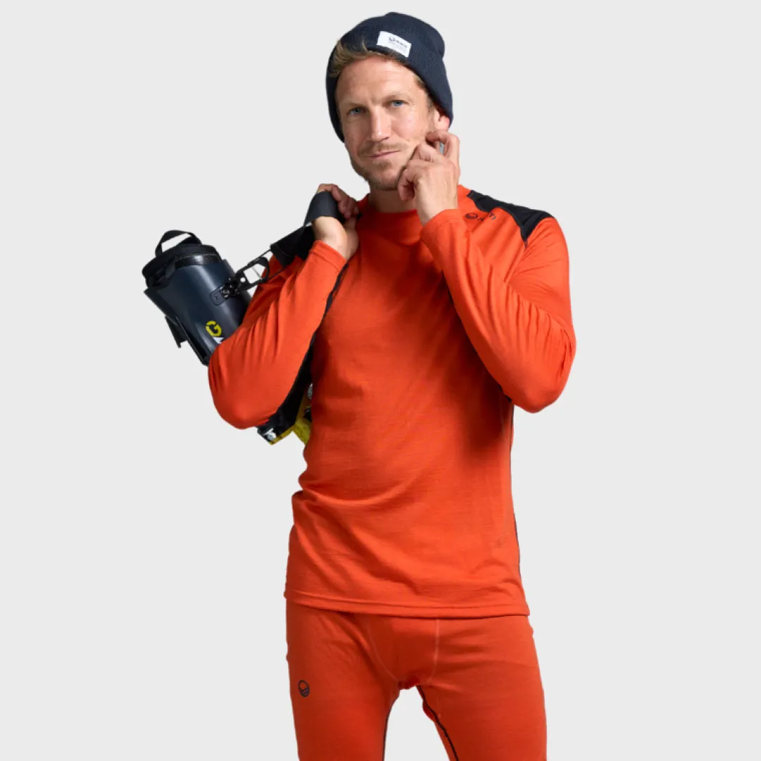 Koon valinta: Mallin pituus kuvassa 182 cm, päällä koko M. Hossa Merinovillakerrasto on malliltaan reilumpi, joten suosittelemme valitsemaan pienemmän koon, jos toivot kerrastosta istuvampaa.