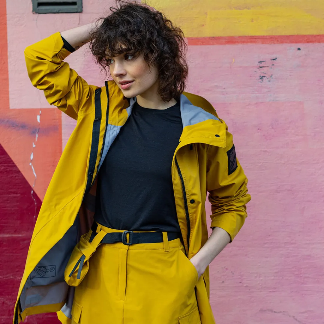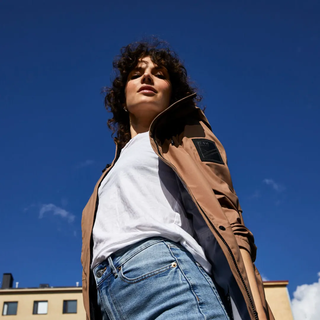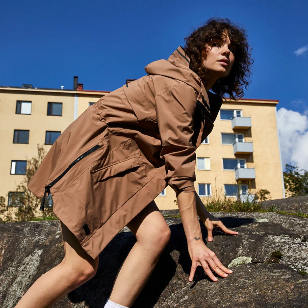 Pitkät sivuvetoketjut tarjoavat maksimaalista liikkuvuutta, olitpa liikenteessä jalan, pyöräillen, potkulaudalla tai skootterilla. Tuuletusaukko selässä takaa parhaan mahdollisen hengittävyyden. Mustat tyylikkäät heijastinyksityiskohdat pitävät huolen näkyvyydestä elokuun hämärtyvissä kesäilloissa. Väljän ja huolettoman tyylinsä ansiosta Kurvi on helppo yhdistää mihin tahansa asuun. Kun puet alle kevyen untuvatakin, pärjäät tällä monikäyttöisellä suosikilla aina keväästä pitkälle syksyyn.